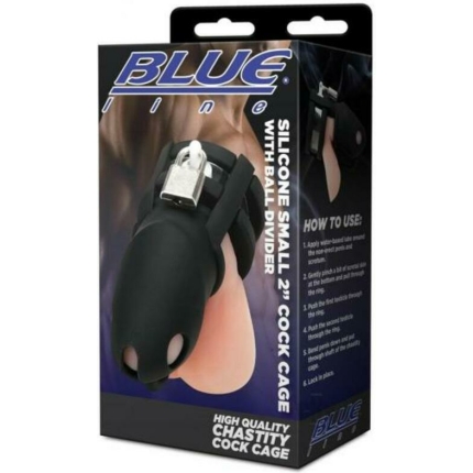 Blue Line 2″ Silicone Mini Cock Cage With Ball Divider – Black
