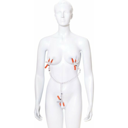 Y Style Adjustable Broad Tip Nipple Clamps With Clit Clamp Silver