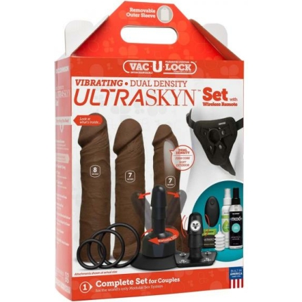 Vac-U-Lock Vibrating Ultraskyn Couples Set with Remote – Brown