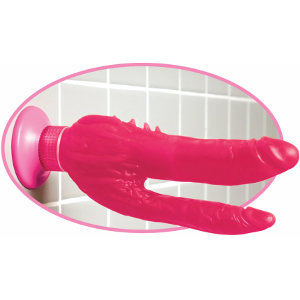 Waterproof Wall Bangers Double Penetrator Pink Suction Cup