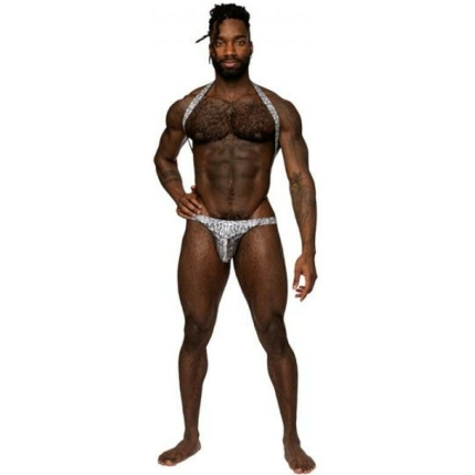 Male Power S’naked Shoulder Sling Harness Thong One-piece Silver/black L/xl