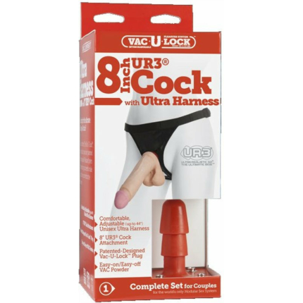 Vac-U-Lock 8″ Ultraskyn Dildo with Ultra Harness – Beige
