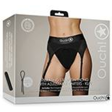 Shots Ouch Vibrating Strap On Thong W/adjustable Garters – Black Xl/xxl