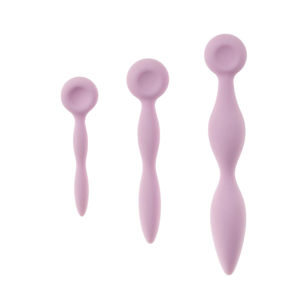 @winter2019-45A system for the progressive rehabilitation of atrophic vaginitis and vaginismus: INTIMRELAX. INTIMRELAX allows you to exercise and gradually dilate the vaginal canal. It allows at the same time through small daily exercises to lose the fear of penetration. It is composed of three elements with a perfectly ergonomic shape and different sizes to palliatively resolve this disorder with harmful effects on sexuality and psychological health in general. INTIMRELAX must be used accompanied by a water-based lubricant to facilitate exercises and at the same time lubricate and moisturize vaginal mucous membranes. Vaseline, which can cause damage to condom latexes or diaphragms (risk of genital infection), or other oil-based lubricants are absolutely contraindicated.