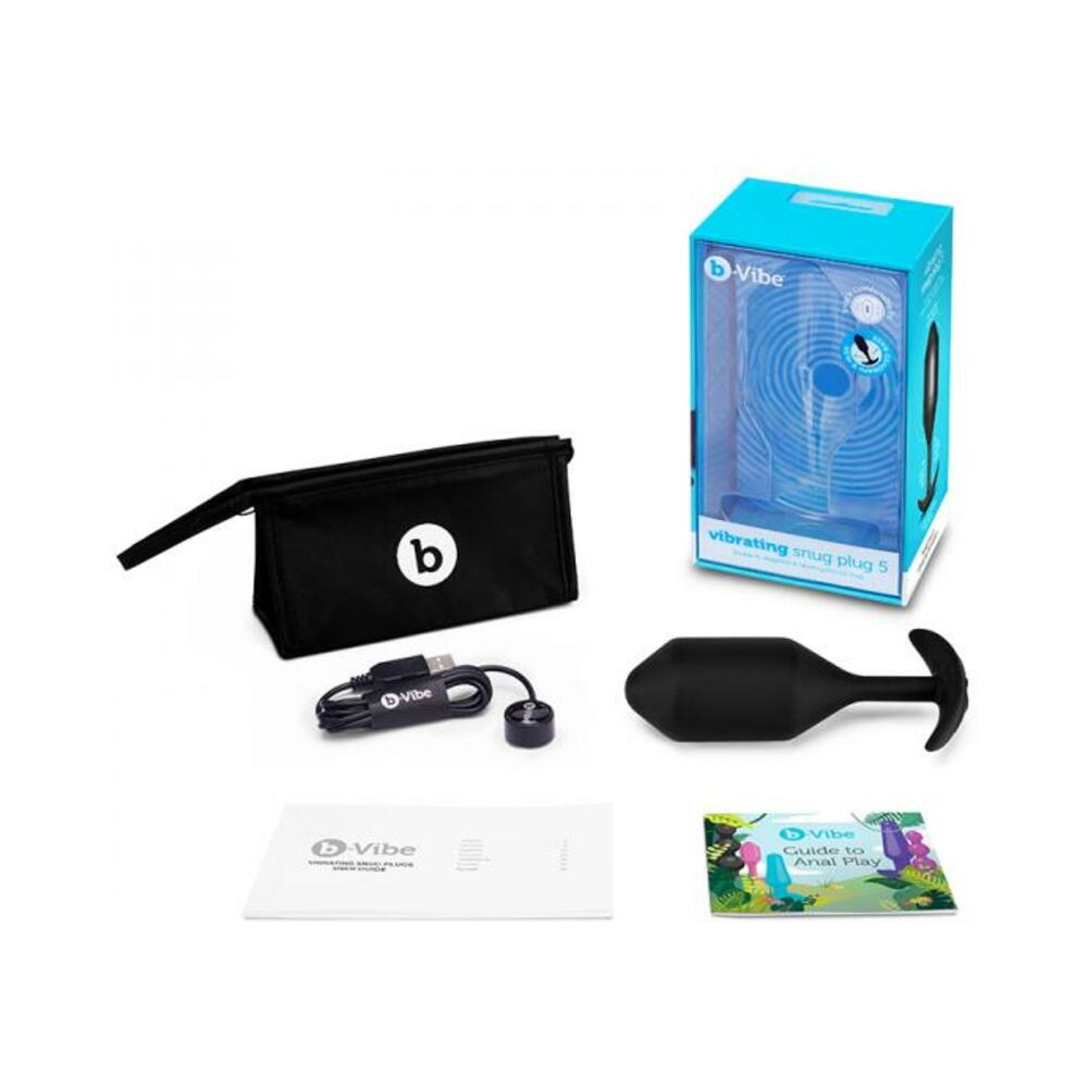 Combine the deep feeling of fullness and powerful vibrations to experience spine-tingling satisfaction like never before! Say hello to the b-Vibe Vibrating Snug Plug. Available in sizes that escalate from 1 to 5 to accommodate any body and anybody, the Vibrating Snug Plugs are perfect for anal training and extended play. The plug lives up to its name by fitting snuggly in your bum, while the weighted balls keep your fanny filled with pleasurable pressure! Experiment with the 6 vibration patterns and 4 intensities and delve deep into decadence with a double stuffing of sensations. Made from premium-body safe silicone, the Vibrating Snug Plug is the perfect toy for prostate stimulation, solo masturbation, or couples play. Powerful Vibrating Bullet — We took our award-winning weighted butt plugs and added a mighty vibe to bring you the best of both worlds. 4 Vibration Levels & 6 Vibration Patterns — Vibration is a characteristic that offers both pleasure and relaxation; A winning combination if anal penetration is your end goal. Available in 5 Sizes — From beginner-friendly to advanced, the vibrating snug plugs come in five graduating sizes and weights to keep your booty filled. 100% Body Safe — The vibrating snug plugs are made soft, seamless silicone that is phthalate-free, latex-free, and completely non-porous. Designed for Discretion & Extended Wear — The torpedo shape of the vibrating snug plugs makes them easy to insert and stay comfortably put. Be sure to keep your plug well-lubricated if you intend on wearing it long-term. USB Rechargeable & Travel-Friendly — An hour’s charge provides an hours play. On the go? Vibrating snug plugs come with a travel-sized storage bag to take on your next (anal) adventure. Includes Guide to Anal Play — We’ve included the best tips from our trusted team of sex educators in a handy little booklet. Now there’s no stopping you from becoming an anal guru! 1-Year Limited Warranty — The vibrating snug plugs are covered against defects in materials and workmanship for 1 year. Put your mind at ease by registering your b-Vibe. Insertable Size: 15 cm / 5.9 in Diameter: 4.9 cm / 1.9 in Neck Diameter: 1.3 cm / 0.5 in Neck Length: 3.9 cm / 1.5 in Base: 7 cm / 2.7 in Size: 16.5 cm / 6.5 in Insertable Size: 15 cm / 5.9 in Neck Length: 3.9 cm / 1.5 cm Diameter: 5 cm / 2 in Neck Diameter: 1.3 cm / 0.5 in