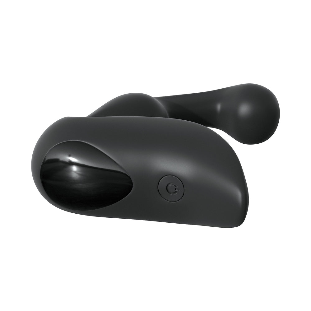 Prostate massager includes two motors with 9 functions of vibration, pulsation and escalation. Operates by a button or a wireless remote control. The ergonomic design allows for extended wear during solo sessions or partner play. Measures 5.6 in. long 4.3 in. insertable, 3.4 in. wide. USB rechargeable.