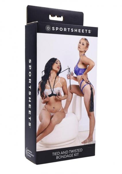 Master the art of dominance and guide your submissive partner through every exhilaratingly kinky scenario imaginable with the Tied and Twisted Bondage Kit. Explore the core principles of BDSM as you revel in your partners obedience. Learn to create seductive and captivating restraints with smooth, luxurious rope and practice punishments with the faux leather finger flogger. Keep their body sensitive to even the softest touch with the included nipple suckers, perfect to keep even the brattiest bottoms on edge. 30andrsquo; black silky rope with metal end caps 13andrdquo; faux leather finger flogger Dual nipple suckers with twist suction and rubber air seal Safety sheers included