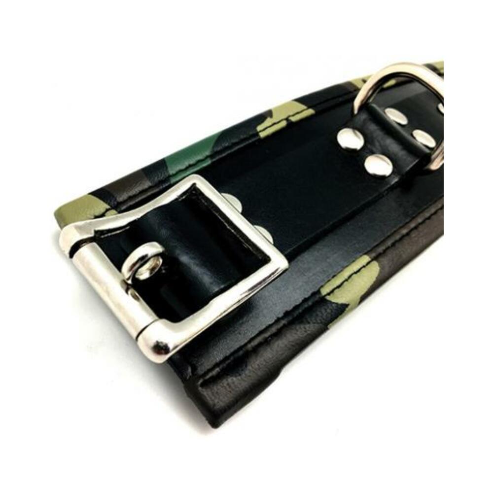 Sensual Sin Leather Padded Wrist Cuffs Camo Piping