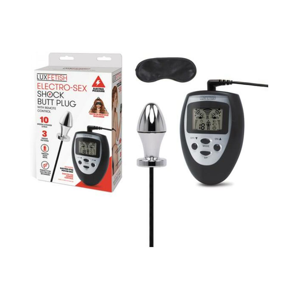 Discover electrifying pleasure and excitement with the Lux Fetish Vibrating Pleasure Electro-Sex Shock Butt Plug with Remote Control. This premium set features 10 speeds, 3 unique patterns, and is crafted from smooth, sleek metal for a truly stimulating experience. The high-quality, body-safe metal construction of the butt plug ensures a hygienic and gratifying experience, while its sleek design allows for effortless insertion and targeted stimulation. The remote control provides added convenience and ease of use, allowing you to effortlessly switch between settings and intensities. Included in the set is a satin blindfold, designed to heighten the senses. Embrace the unknown and let your imagination run wild as you explore the unique sensations of electro-sex play.Features 2″ (5 cm) Insertable length 10 Adjustable speeds and power levels 3 Unique patterns Smooth sleek metal Perfect for electro-sex beginners Electro-stim power unit; adjustable intensities for tailored stimulation Satin blindfold included Item Materials: Phthalate-Free ABS plastic, Aluminum Alloy.