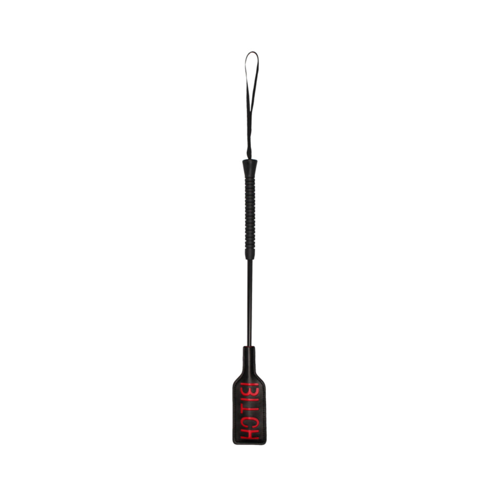 Ouch! Crop – BITCH – Large – BlackOuch! Leave a lasting impression on your partner. This short handled rectangular shaped crop is the perfect way to discipline your partner. Leave a lasting impression on your sub. The word BITCH is reversed so it will show up on their skin