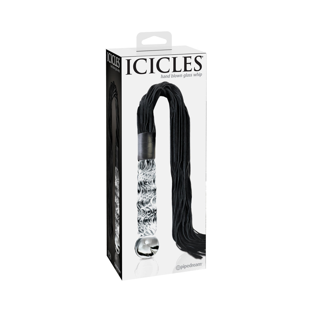 Elegant, upscale, and hand crafted with amazing attention to detail, this luxurious glass flogger will leave you breathless. Each hand blown Icicle glass piece is sleek, unique, and made to play hard. The hypoallergenic glass is nonporous and body safe, and when cared for properly, is designed to last a lifetime. The glass Cat O Nine Tails features genuine bull leather tresses that are soft enough for beginner play but heavy enough to deliver a firm whack! The heavy duty weighted glass handle is hand blown and doubles as a glass dildo for vaginal or anal play. The beautiful textured swirls provide added stimulation, and the glass handle can be heated or cooled for tempting temperature play. Both practical and stylish, this gorgeous glass flogger is the perfect addition to any glass or fetish collection. To clean, use Pipedream Toy Cleaner and run the glass handle under warm water, making sure not to get the leather tresses wet. Do not use in the microwave or dishwasher.