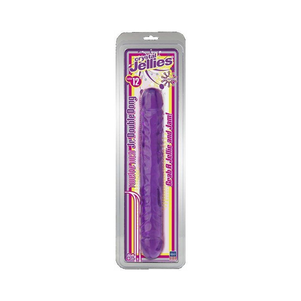 Doc Johnson’s 12 inches Crystal Jellies Jr. Double Dong has a phallic head on each end and a veined shaft for stimulating double penetration. The dong is soft and flexible for individuals and just the right length to share with a partner. Translucent color provides a visually stimulating view for all. Warmed up for a classic double header? Available in Pink, Clear and Purple. PVC 12″ Double Dong, Veined Texture, Flexible, Made in the USA.