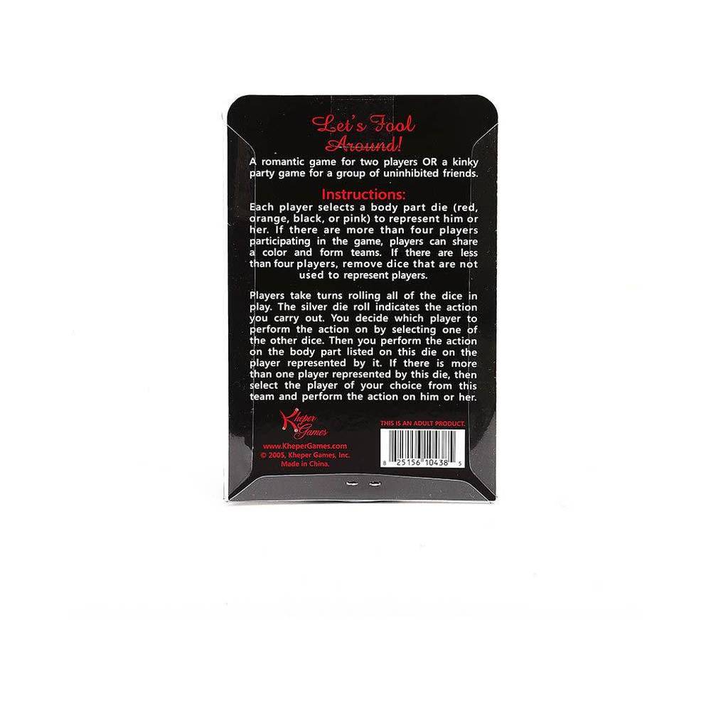 Lets Fool Around Dice GameA romantic game for two players or a kinky party game for a group of uninhibited friends. After a player rolls, he decides whose body part he’ll perform the action on, based on who each die represents and what is rolled.
