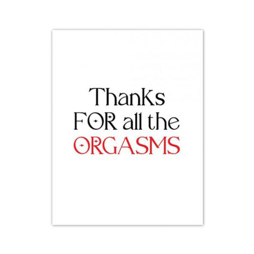 Express your gratitude in a cheeky and bold way with our ‘Thanks for all the Orgasms’ card! This straightforward and humorous card is a perfect cheeky thank-you to a partner who knows exactly how to keep the sparks flying. It’s a unique way to celebrate your intimate moments together, perfect for an anniversary, Valentine’s Day, or any special occasion that calls for a little extra sass and a lot of love. Patent Pending. Design Details: Naughty ‘Thanks for all the Orgasms’ greeting card, with bold typography on a clean white background, accented with a pop of red. Ideal for a humorous and love-filled message. Front Message: Thanks for all the Orgasms Inside Message: (Blank Inside) Size: 4.25″ x 5.5″ Includes: Greeting Card, Envelope, Plastic Wrap