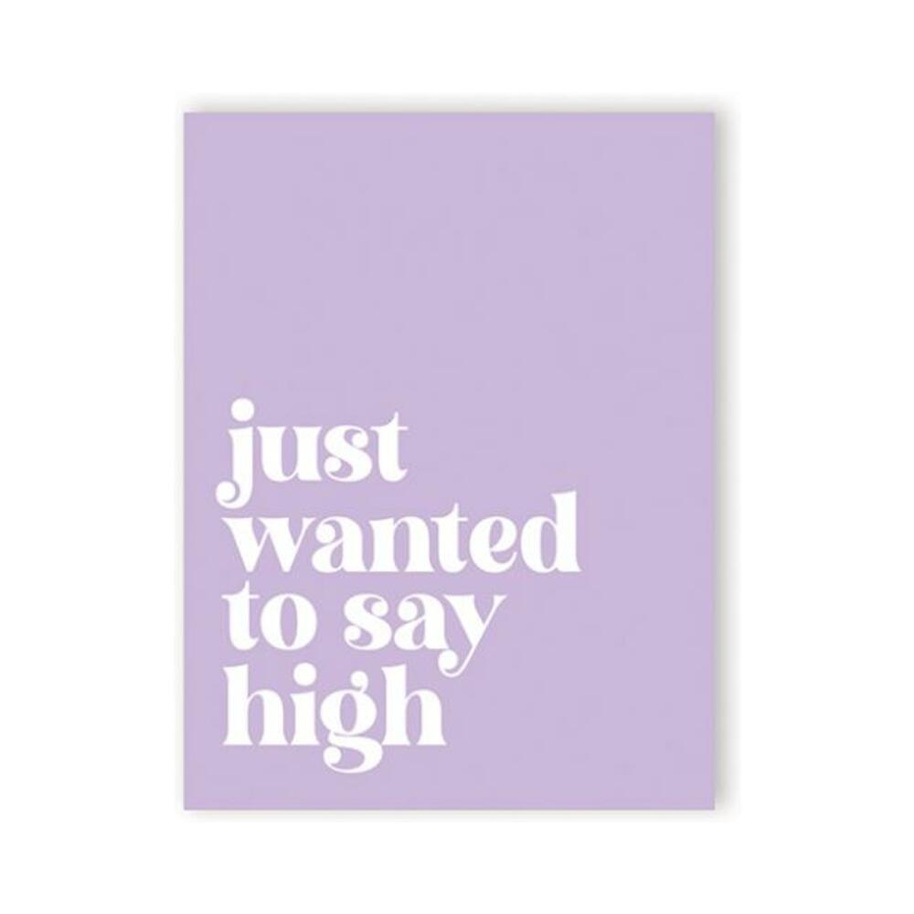 Drop a giggle in their day with our ‘Just Wanted To Say High’ Tiny Card! With its soothing lavender backdrop and whimsical white lettering, this mini missive is perfect for saying hello in a mellow yet memorable way. Whether slipped inside a book, perched on a pillow, or nestled between the buds of a bouquet, this card is your go-to for sharing a pinch of joy and a dash of chill vibes. Front Message: Just Wanted to Say High Inside Message: (Blank Inside) Size: 4.25″ x 5.5″ Includes: Greeting Card, Envelope, Plastic Wrap.