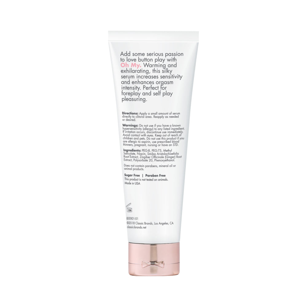CG Oh My Clitoral Stimulant Warming Serum1 fluid ounce from Classic Erotica. Fragrance free. Add some serious passion to love button play with Oh My. Warming and exhilarating, this silky serum increases sensitivity and enhances orgasm intensity. Perfect for foreplay and self play pleasuring. Apply a small amount of serum directly to clitoral area. Reapply as needed or desired. Warming and tingly serum, ideal for clitoral arousal and enhanced sensation. Formulated to enhance orgasm intensity. Fragrance free. Ideal for adult toy, self and couple’s play. This product does not contain gluten or sugar. This product does not contain parabens or mineral oil. This product is not tested on animals. Made in the USA.