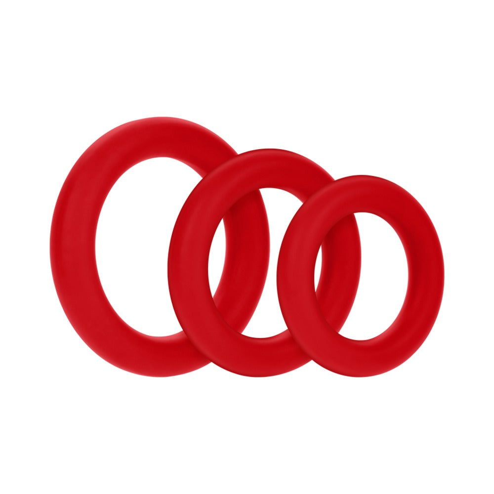 Spartacus Rubber Cock Ring Set – Red Pack of 3