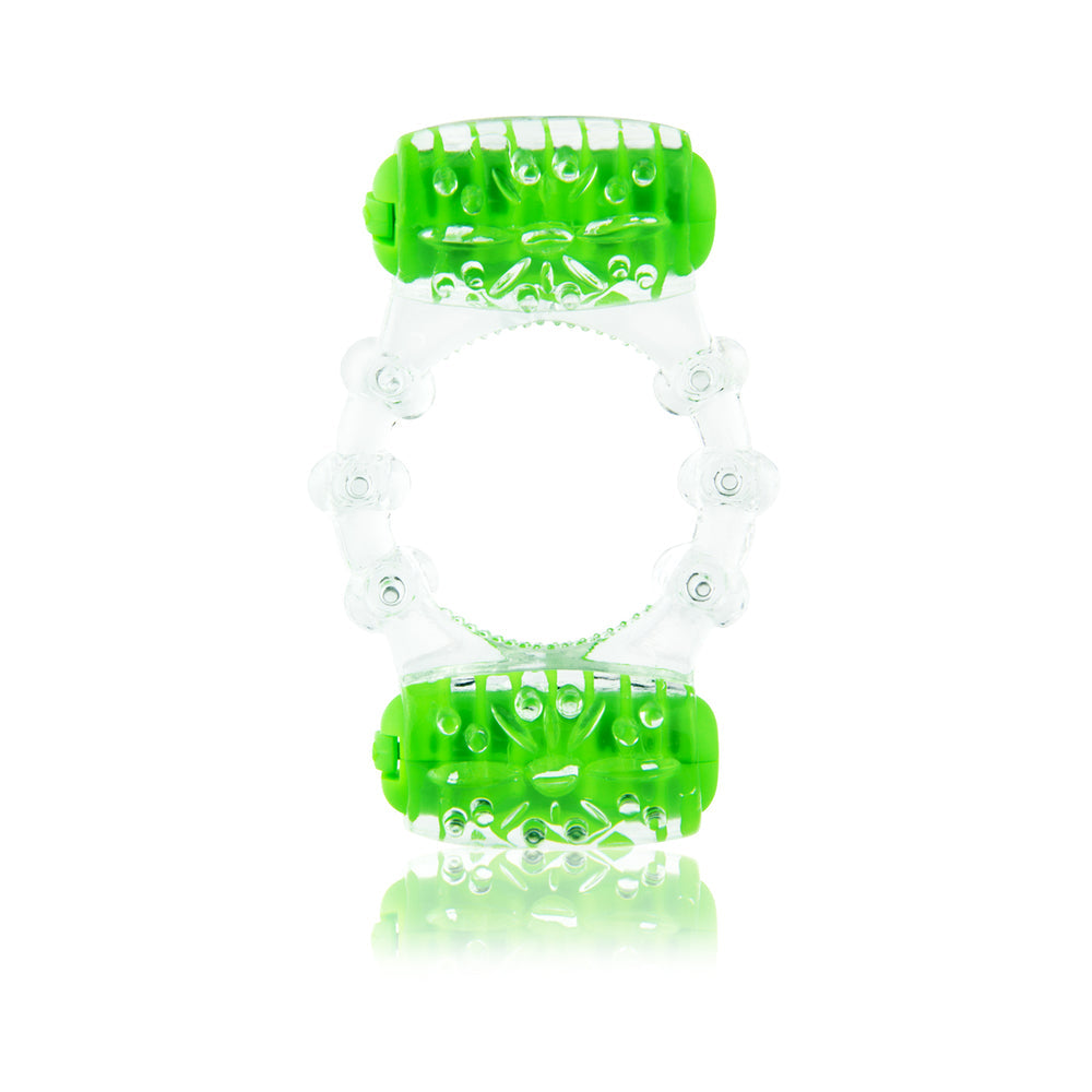 The Two-O Double Pleasure Vibrating Ring features two super powered, super bright mini motors attached to a stretchy and comfortable pleasure ring for better, more satisfying sex. The top motor stimulates her clitoris while the bottom motor buzzes strong for mutual pleasure, giving couples something to scream about together! Now available as a convenient ColorPoP Quickie, couples can enjoy vibrant vibration at home or on the go with a disposable design they can take anywhere! Features: two long lasting motors for his and her pleasure. Intense vibrating ring with super stretchy band. Pleasure ticklers for increased clitoral stimulation. Pleasure knobs around the ring boost his experience. Two easy on/off switches. Disposable. 30+ minutes battery life. One size fits most.• SEBS silicone• Latex- and phthalate-free• Water Resistant