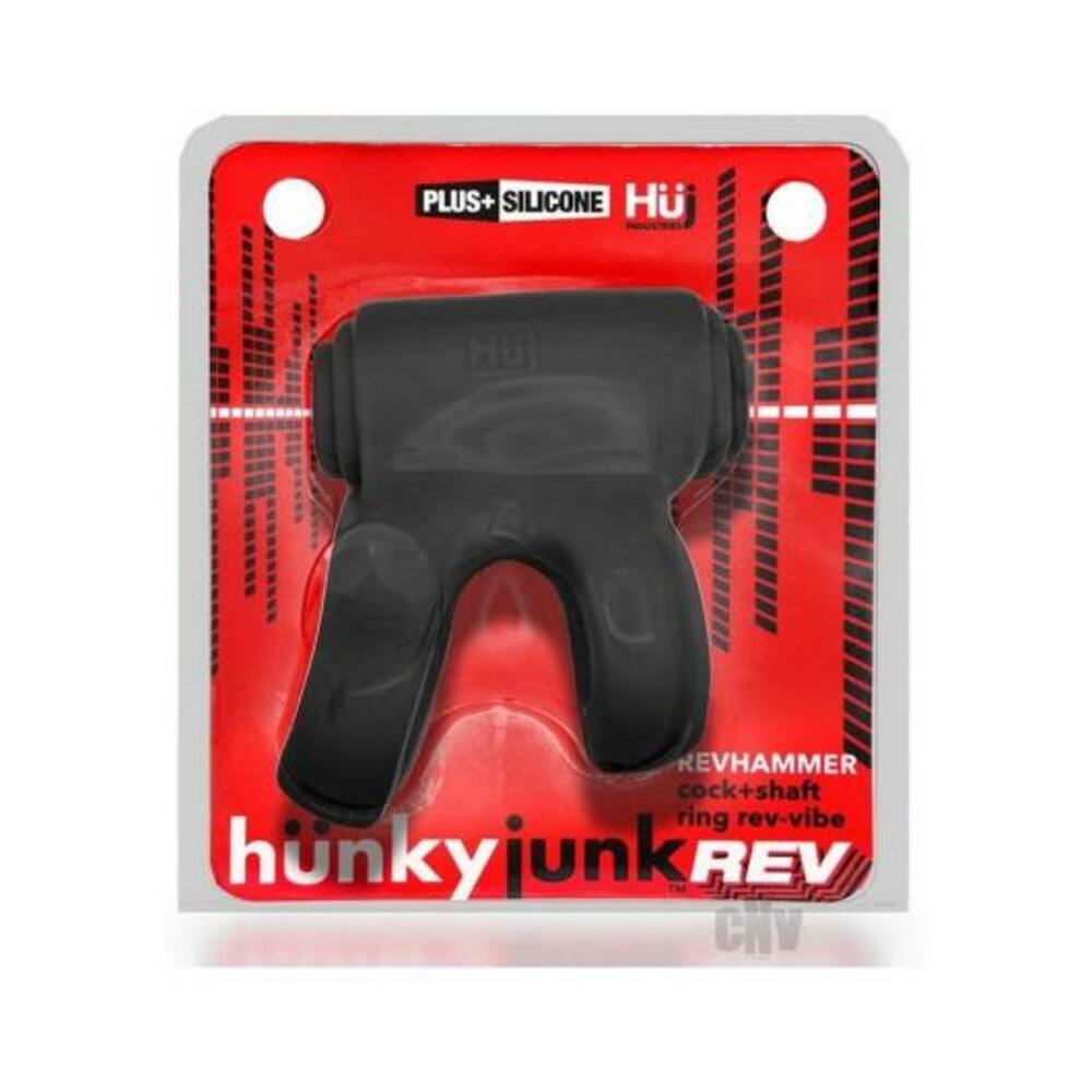 REVHAMMER reverb dick-shafter by hünkyjunk REVHAMMER cockring+shaft-strapped reverb vibe by hünkyjunk REVHAMMER shaft-strapped shaker is a COCKRING plus shaft-ring that puts the vibe shaftwise, lengthwise up on top, its got a rubbery front nub that seeks to aim at any hole you wanna fuckevery thrust missiles the buzz-vibe up against the gape-lipsor even the BJ`s puckerREVHAMMER sends vibe into the both your shaft and the lucky shaftee. Good stuff! Every thrust moves the hummy-buzz deeper, closer to its targetthe boys at hünkyjunk wanted a piece of vibe-gear you feel fucking and feel getting fucked.andnbsp; REVHAMMER straps on with a rubbery cockring in back, the vibe lays on top of your dick and the front ring stretches around your shaft about 1-1.5 from the base.andnbsp; The rings secure the reverb-vibe for lots of hard play. We like JO with this thing humming at the base of our dick and fucking with itit`s excellent couples gear. Cool feature:andnbsp; there are shaft-top ribs under the rubbery vibe that holds lube to rub you right. Like everything hünkyjunkREVHAMMER fits a need and more, it feels right, fits right and lasts, the rubbery-firm Plus+SILICONE mix is super-soft stuff with a slick smooth velvet finish that`s super-rubbery tough. HOW TO: a bit of light lube on your junk, slide your junk through front bigger ring, your shaft through the smaller ring. Click the waterproof, silicone sealed buzz-vibe on and hammer away. VIBE UNIT:andnbsp; 3 button batteries give 5-7 hours buzzfucking vibing.andnbsp; Battery size: LR44, comes with three. andnbsp; Made of exclusive Plus+SILICONE blend with a lush dull velvet feel and a warm fleshy stretch.andnbsp; Hünkyjunk makes the toys that work hard, look hot and are super hünky for your junk REVHAMMER is an original design copyright hünkyjunk. Plus+SILICONE blend non-toxicand phthalate free. LUBE SAFE:andnbsp; Water-based or silicone. CARE:andnbsp; Wash after use in warm soapy water, air dry.andnbsp; Store toys separately:andnbsp; we recommend breathable cloth pouches or cotton socks. andnbsp; INFO: It`s a cockring, shafring and missile-vibe Vibe lays shaftways on top, with a rubbery bumper tip Vibe wrapped in rubbery thick material Silicone seal vibe bullet: waterproof, sealed button Plus+SILICONE matt velvet finish silicone/TPR blend andnbsp; MEASUREMENTS/WEIGHTS PRODUCT: Height: 3/76mm Width:andnbsp; 2/51mm Length:andnbsp; 3.5/89mm Cockring hole circumference: 4/10cm Shaft hole circumference: 3/9cm Vibrator length: 2.4/61mm Vibrator circumference: 2/51mm andnbsp; PACKAGING SIZE/DIMENSIONS+WEIGHT: Weight (product+packaging):andnbsp; 5oz Package Length: 5.5/14cm Package Width: 5.3/13cm Package Depth: 3/ 76mm andnbsp; andnbsp; andnbsp;