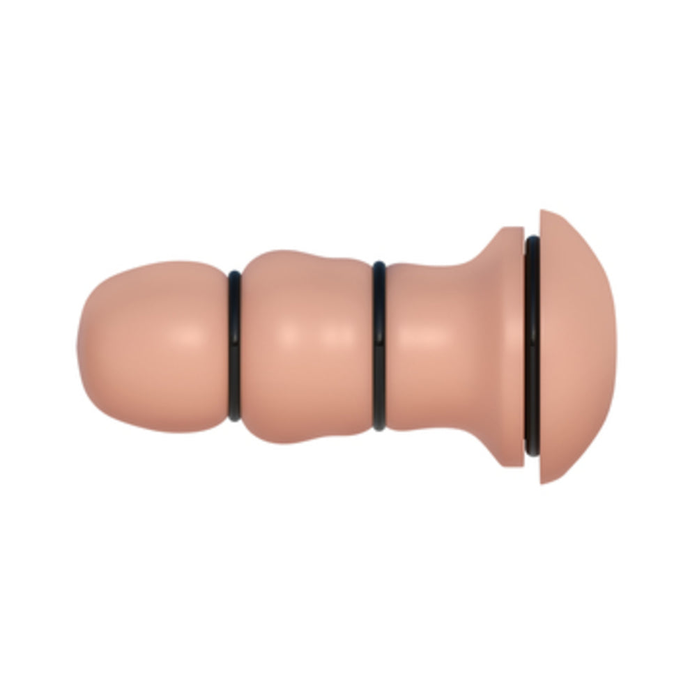 With three stretchy silicone rings wrapping around the sleeve, you get the ultimate stamina trainer. The silky soft Fanta Flesh feels just like the real thing. The ribbed tunnel tickles and teases you while the stretchy silicone rings give you the perfect squeeze. The smallest ring sits at the bottom of the sleeve and the biggest ring wraps snug around the opening, delivering incredible sensations with each stroke. Includes Moist body lotion and toy cleaner.