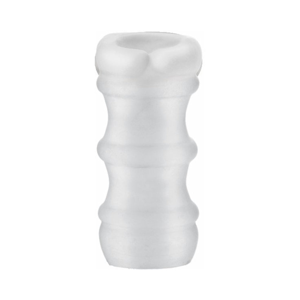 Great for a solo session, or to add something extra to playtime with a partner, the Mood Pleaser masturbators are soft, stretchy strokers with four distinct internal textures. These ultra unique masturbators combine modern aesthetics with pleasurable functionality. Finger grips on the side of the sleeve make control easy, even with lube. This Mood Pleaser Purple, with plush and intense internal ribbing, is 4.6 inches long, with a good bit of stretch.