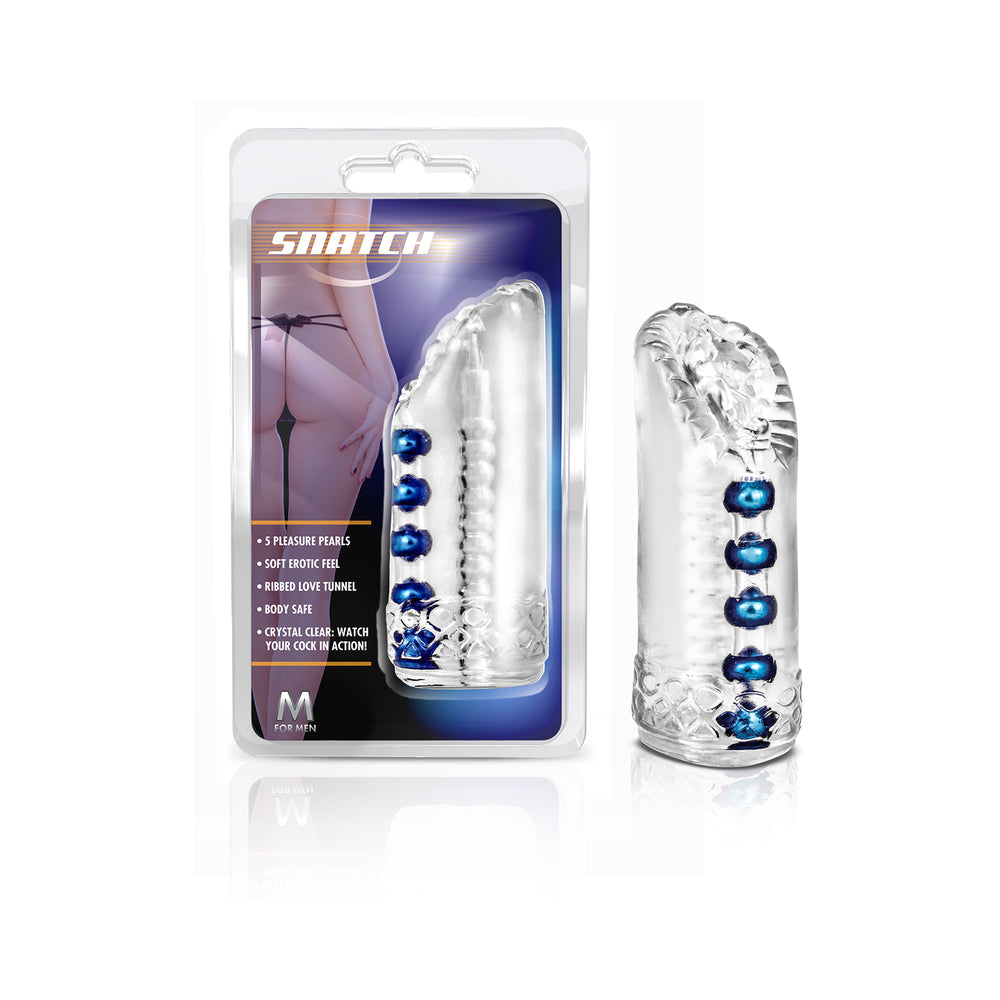 Get ready for some serious action tonight. Snatch is well equipped to handle your stroke session. Lined with 5 pearls of pleasure and a ribbed tunnel your cock with get the extra stimulation it deserves. An open end means you can POP The TOP! Use by yourself or have your partner do the stroking for you as you watch your cock in action through the crystal clear walls. Super soft for an erotic feel!1) 5 pleasure pearls 2) ribbed tunnel 3) soft 4) open ended -1 size fits all!