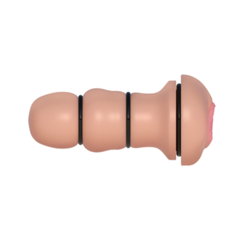 With three stretchy silicone rings wrapping around the sleeve, you get the ultimate stamina trainer. The ribbed tunnel tickles and teases you while the stretchy silicone rings give you the perfect squeeze. The smallest ring sits at the bottom of the sleeve and the biggest ring wraps snug around the opening, delivering incredible sensations with each stroke. Includes Moist body lotion and toy cleaner.