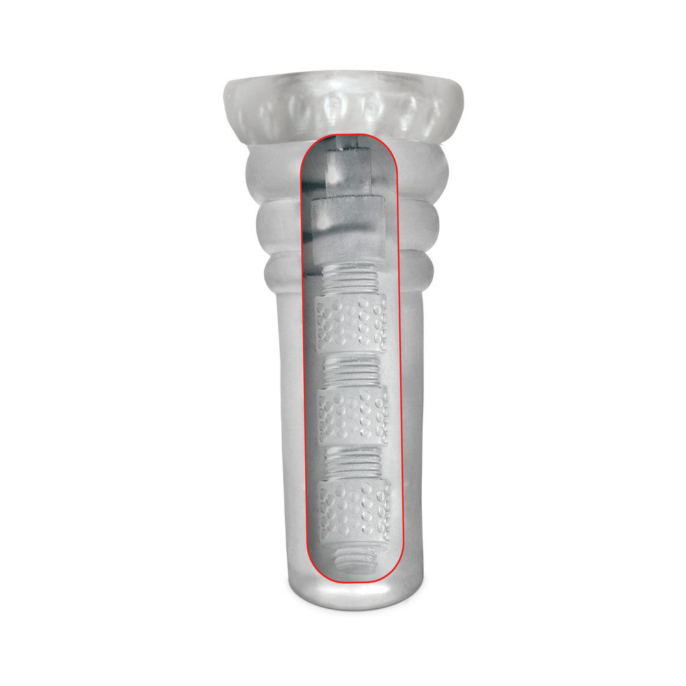 Get ready for the most realistic pussy simulator ever created! The Head Master Snatch is the ultimate handheld jack off sleeve developed for maximum ball blasting climaxes. The soft pussy lips wrap around every inch of your pleasure rod and cling to your cock with each stroke. Once inside, hundreds of tiny love nodules and ribbed spirals tease and please, while the incredible sucking action starts to develop. The accordion like design sticks to your pelvic area and creates a powerful vacuum action, simulating the most intense f-ckhole ever imagined. Best of all, it is transparent so you can watch your cock swell with power and grow bigger than ever before! When your done, watch yourself blow a load deep inside and do not worry about a thing! Use plenty of Moist Lube for an extra wet encounter and Pipedream Toy Cleaner for quick and easy clean up!