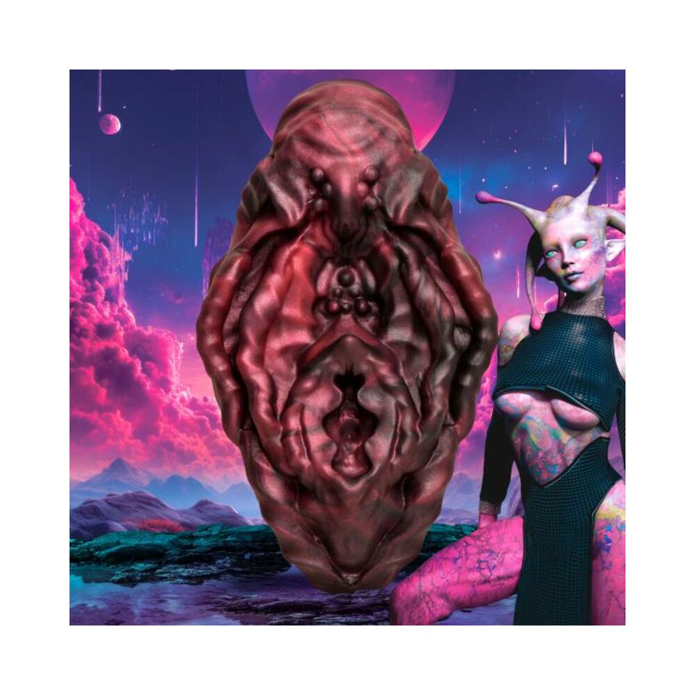 Rub against the textured, squishy, uniquely designed alien vulva and enjoy non-penetrative pleasure that can still take you over the edge of pleasure! For those who love direct stimulation against their erogenous zones but want a little more than the fingers and hands, this red and black Xeno vulva is designed with small beads, bumps, grooves and valleys that catch the lube and let you slip against it in passionate grinding! Made especially with vulva-owners in mind, it can also be a fun and sensual toy used against the nipples, balls, or shaft. Let your fantasies run wild as you imagine your erotic rendezvous with alien creatures! Place the grinding toy on chairs, couches, vibrating toys or in the palm of your hand to enjoy! To clean, wash with warm water and mild soap and then rinse, spray with a toy cleaner and pat dry. Store separately from other silicone toys and out of direct heat or sunlight. Use only with water-based lubricants. You open your eyes to find you’re in a warm cavern with low, red lights. Your wrists and ankles are tied together. As your vision clears, you see someone standing in the distance. Wait, no… it isn’t someone… it’s something! They walk closer and you see this red and black creature, a humanoid with flitting insect wings, large black eyes, and a slim, feminine body. They walk up to you on long, slender legs, and then crouch over you. You can see your reflection in their deep, shining, black eyes. Their narrow face opens and a long tongue reaches out to lick and taste your face. It tickles and feels oddly pleasant… Their hand reaches out to caress your face and the touch is gentle. They touch the ropes connecting your ankles and they simply dissolve into nothing. Your eyes widen as they lower their head between your thighs and begin licking you! It feels so good you begin to moan. Then they slide between your thighs, and begin to rub their own alien vulva against you. Their slick, viscous slime gets all over you and it begins to warm you up. Before you know it you’re grinding against them too, lost in a fever of passion and lust! Measurements : Overall length: 4.1 inches. Overall width: 2.3 inches. Overall height: 1.2 inches. Materials : Silicone Color : Red, black Note : Use only with water-based lubricants.