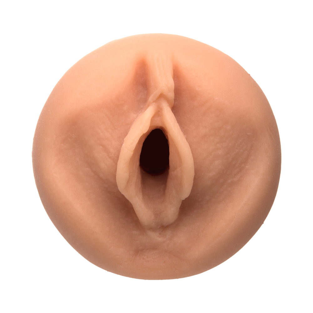 This textured Ultraskyn masturbator is molded from porn star Sasha Grey. Features a hard outer case with a built in squeeze plate grip that allows user to control pressure. The base twists to adjust suction strength. Fully disassembles for cleaning. Measures 7.5 inches long by 3 inches.