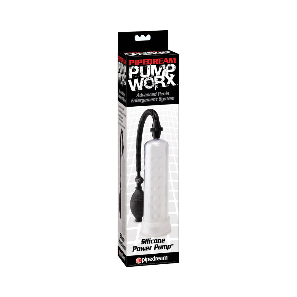 The Silicone Power Pump will give you the size and confidence you have always dreamed about without any harmful side effects. With each squeeze of the medical style pump ball, your pleasure rod will grow bigger, thicker, and swell with power. Once you penetrate the body safe, soft silicone opening, you will quickly discover throbbing, rock hard erections that feel great and last and last, with no midway performance letdowns! The clear vacuum tubes allow you to watch your cock grow, and the quick release valve relieves pressure with a push of the button. The silicone sleeves feel great against your cock while it provides extra stimulation and a super tight seal against your skin. To prolong ejaculation, slide the included enhancement ring over your shaft until it is nice and snug. The tight squeeze will prolong cumming, help maintain your erection, and extend the fun. When you are done, simply detach the cylinder from the vacuum hose and restore it to like new quality with Pipedream Toy Cleaner and warm water.