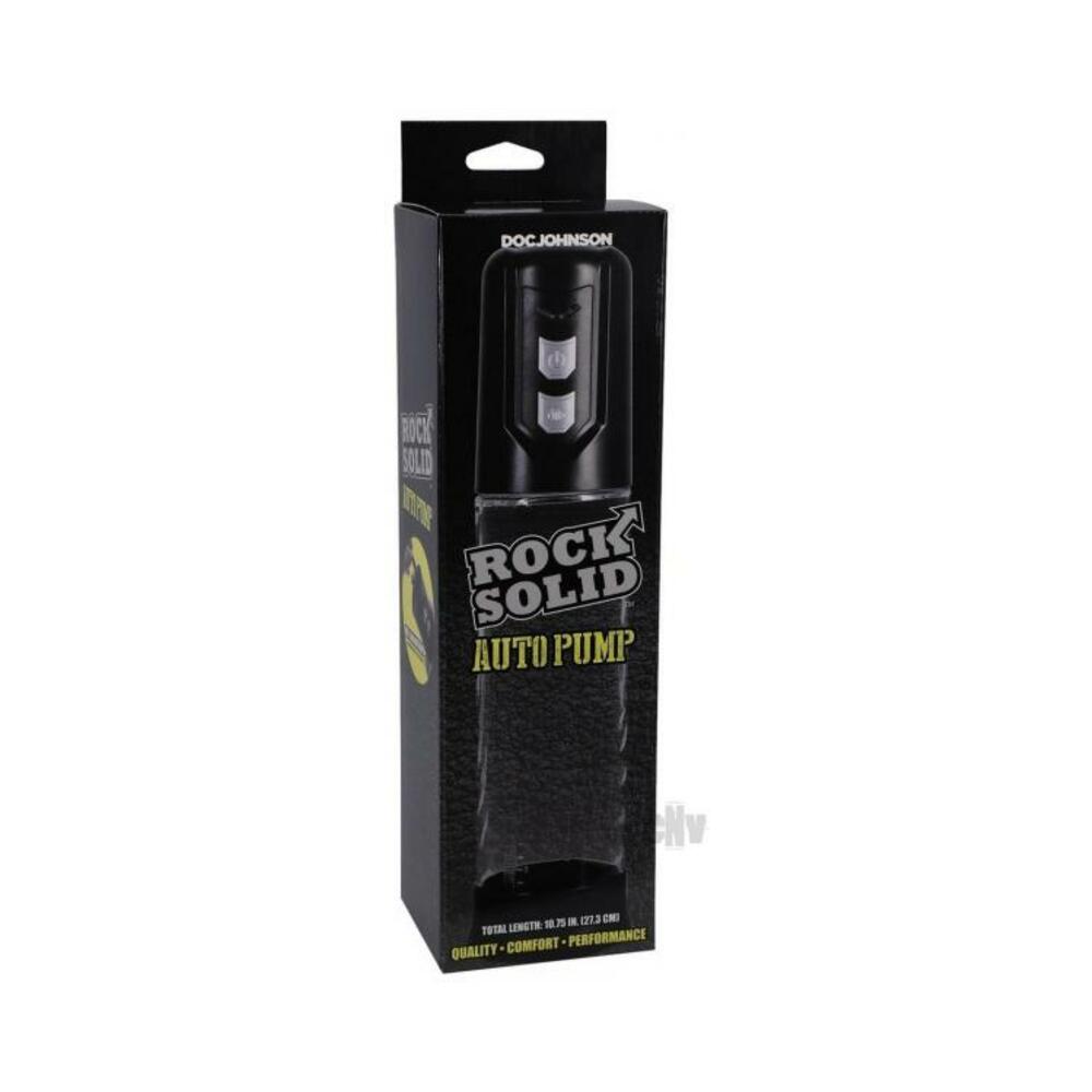 Get ready for larger, thicker erections with Rock Solid’s Auto Pump. This single-speed clear pump allows you to see your growth as it happens. Requires two AAA batteries, not included.Features Creates Thicker, Harder Erections Clear Vacuum Cylinder with Centimeter Markings to Track Progress Soft Silicone Sleeve for Airtight Seal Air Release Button for Fast, Safe Removal Pressure Meter Gauge to Track Results Phthalate-Free, Body-Safe Dimensions Total Length: 10.75 in. (27.3 cm) Insertable Length: 7 in. (17.8 cm) Unstretched Inner Diameter: 3.07 in. (78 mm) Circumference: 7.75 in. (19.7 cm)