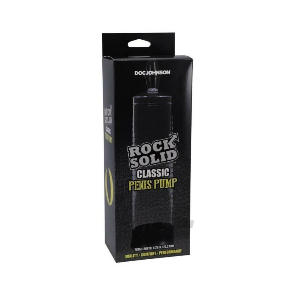 Get ready for larger, thicker erections with Rock Solid’s Classic Penis Pump. This clear tube allows you to see your growth with each squeeze of the bulb. Its silicone entry sleeve keeps the pressure in, and its easy-release button gives you the ability to move on to your next endeavor.Features Creates Thicker, Harder Erections Clear Vacuum Cylinder with Centimeter Markings to Track Progress Soft Silicone Sleeve for Airtight Seal Easy Squeeze Bulb Handle Air Release Button for Fast, Safe Removal Phthalate-Free, Body-Safe Dimensions Total Length: 8.75 in. (22.2 cm) Insertable Length: 8 in. (20.3 cm) Unstretched Inner Diameter: 2.75 in. (70 mm) Circumference: 7.75 in. (19.7 cm)