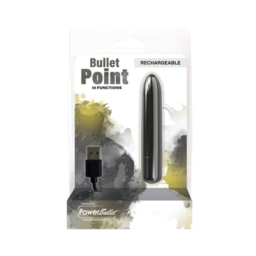 Let’s get right to the point! PowerBullet’s Bullet Point is the hottest, new, 4″ bullet vibrator that is ready to rock your world! It’s also one of the most competitively priced bullets out there! PowerBullet has put an exciting twist to the classic bullet shape and added a pointed end, so that the vibrations can travel directly where you want them to go with pinpoint accuracy. PowerBullet is known for their highly advanced motors that produce deep and rumbly vibrations, and this product is no exception. With a simple press of a button, Bullet Point will take you through mild to wild vibrations and everything in between with 10 incredible functions to choose from. This compact toy is perfect for on-the-go adventures and can fit right in your purse – just treat it like it’s one of your lipsticks! And you don’t have to worry about the vibrations randomly going off; the Bullet Point is equipped with a travel lock feature that ensures discreet travel. For play off of dry land, bring the Bullet Point into the bath tub or shower – it’s waterproof! Virtually seamless, the smooth finish band deep shine to the bullet are nice to feel and look at, but also have body-safe advantages that allow you to use it on all your most delicate areas. Whether its for massage, couples or solos play, the Bullet Point has something in store for everyone. So, sit back, relax, and allow the vibrations to do all of the talking. Key Features: Bullet Vibrator Pointed Tip for Targeted Pleasure 10 Functions PowerBullet Motor Body-Safe Material Compact Size Travel Lock Easy to Use Waterproof USB Rechargeable