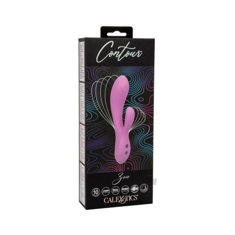 Reach new heights of pleasure with the fantastically flexible Contour Zoie. The intimately contoured dual massager is as thrilling as it is versatile with an extremely flexible body, flicking teaser, and 10 indulgent vibration functions. Embrace earth-shaking g-spot stimulation like you`ve never experienced with the accentuated G stimulator tip and intense dual motor pulsations. This high-powered dual massager is created with a curved g shaft and a naturally contoured stimulator to please your most intimate curves. From steamy solo showers to hot times in the tub, get playful with the waterproof surface and 10 extremely powerful functions of vibration. The easy-touch 2-button control lets you cycle through the knee-shaking settings. While the easy touch buttons control the intensity and the vibe gives you the stimulation you want, the pliable body holds any position you desire. Recharge the premium silicone teaser in 2.5 hours with the provided USB charging cable to enjoy 40 minutes of high-speed stimulation or 90 minutes of low-speed vibrations. The premium liquid silicone design is soft, smooth, durable and waterproof.