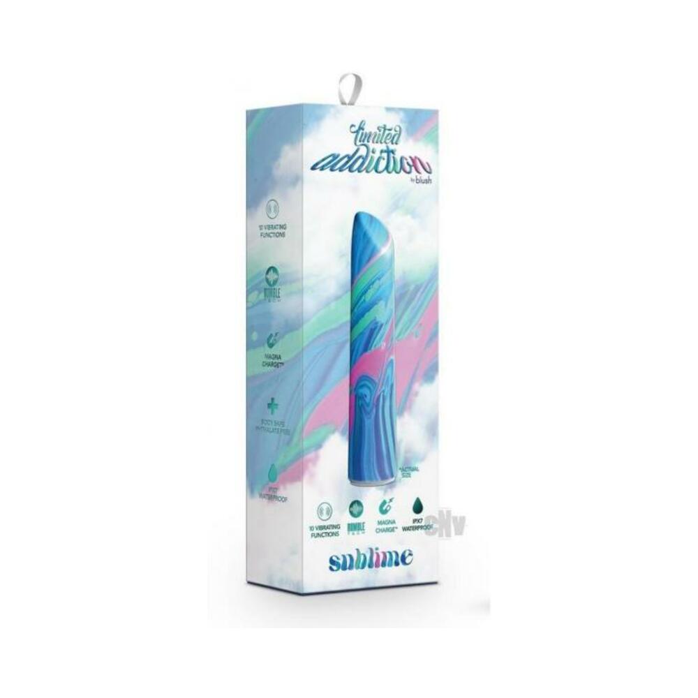 Are you ready for your newest addiction? The Limited Addiction Sublime Power Vibe is a colorful and sleek vibrator that delivers 10 deep, rumbly vibrations with the superior Rumble Tech motor! Cycle through 5 powerful speeds and 5 unique and thoughtfully curated patterns using the two button design to find your perfect pleasure preference. IPX7 submersible waterproof for bath and shower play and USB magnetic rechargeable, the Sublime Power Vibe is easy to clean and even easier to use. It has a smooth, sensual satin feel and it contains no phthalates, paraffins, latex, or fragrance.